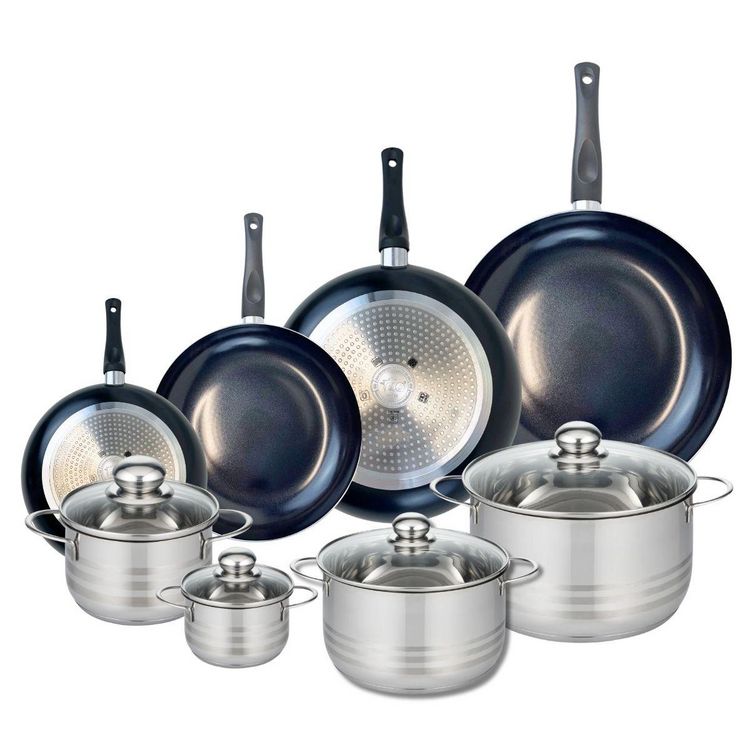Ensemble de 4 Poêles de cuisson 20, 24, 28 et 32 cm et 4 faitouts 12, 16, 20 et 24 cm Elo Prima Brillant