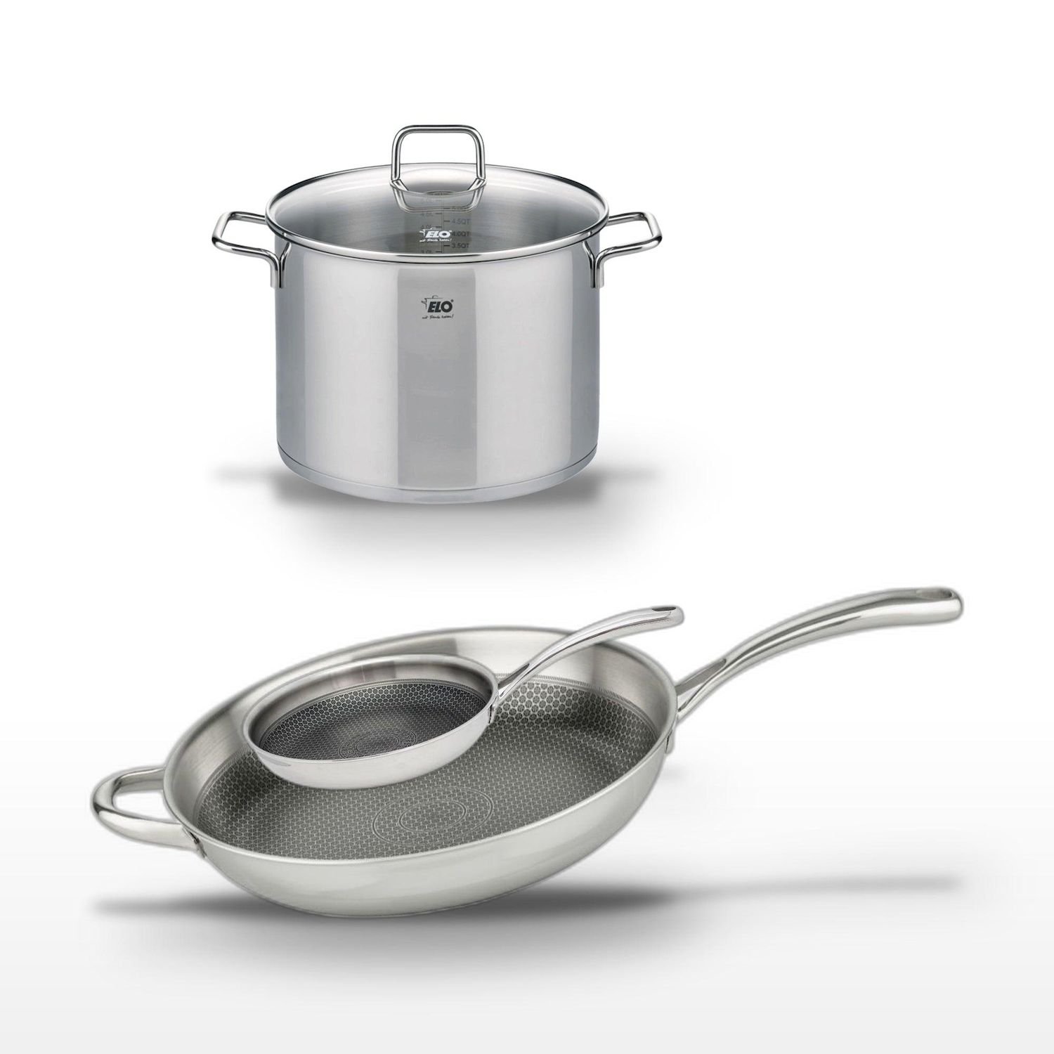 - DESCRIPTION : L'ensemble Elo Relief Evolution combine un faitout de 26 cm et deux poêles de 24 et 32 cm, tous en acier inoxydable 18/10 pour une cuisson optimale.
