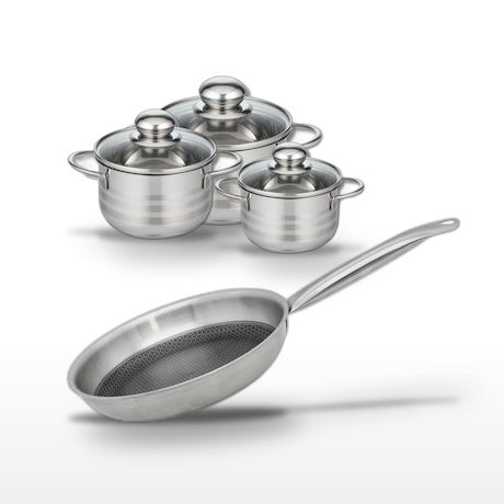 - DESCRIPTION : DESCRIPTION : Ce lot Elo Relief Solution inclut une poêle de 24 cm et trois faitouts de 12, 14, et 16 cm, tous en acier inoxydable sans PFAS, pour une cuisine saine et homogène.
