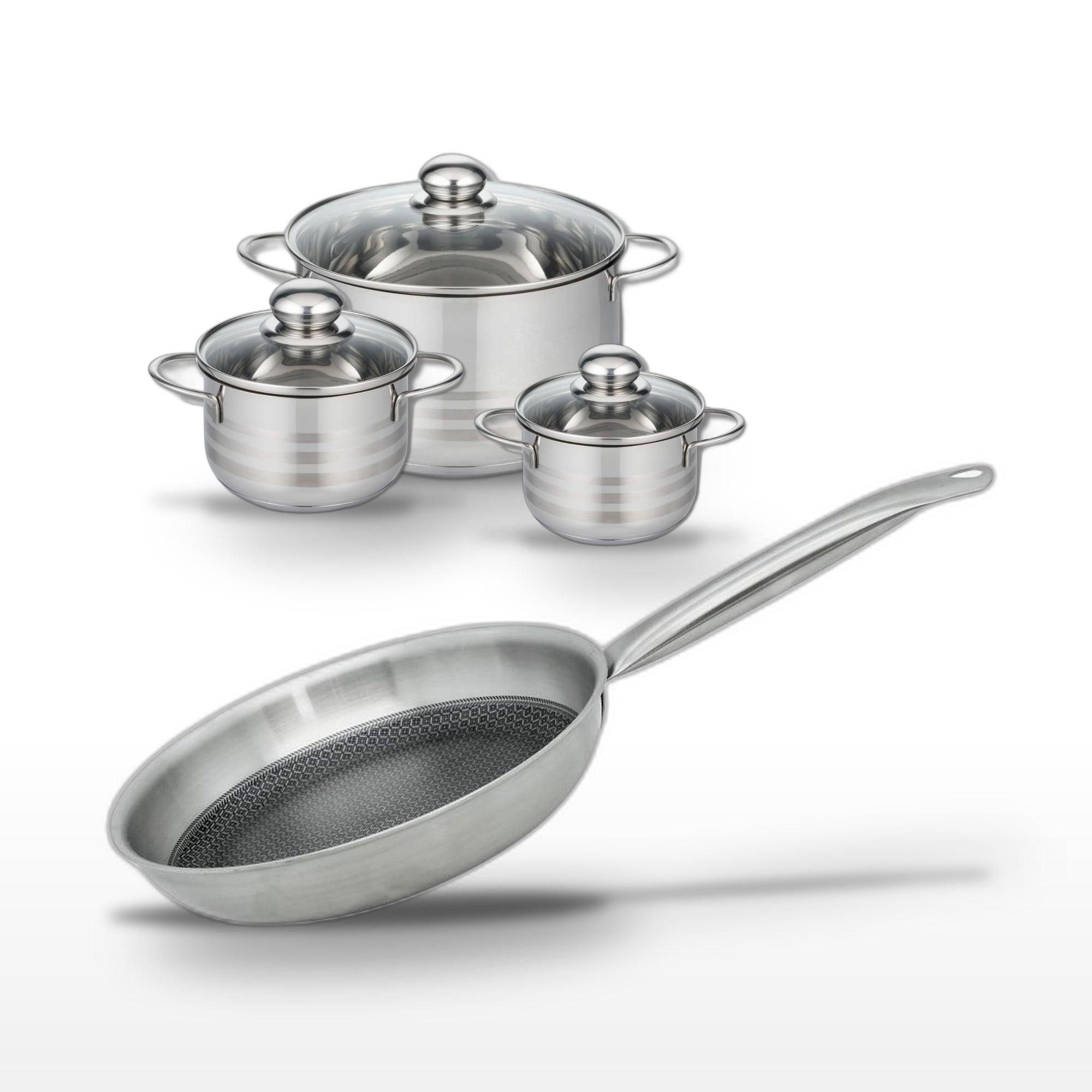 Lot 1 Poêle 24cm & 3 Faitouts 12/14/24cm Elo Relief Solution