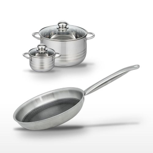 Lot 1 Poêle 28 cm et 2 Faitouts 12/24 cm Elo Relief Solution