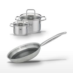 - DESCRIPTION : DESCRIPTION : Ensemble Elo Relief Solution avec deux faitouts en inox et une poêle antiadhésive, pour une cuisine variée et maîtrisée.