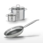 - DIMENSIONS : Faitout 20 cm (3,4L), Faitout 26 cm (9,5L), Poêle 28 cm.