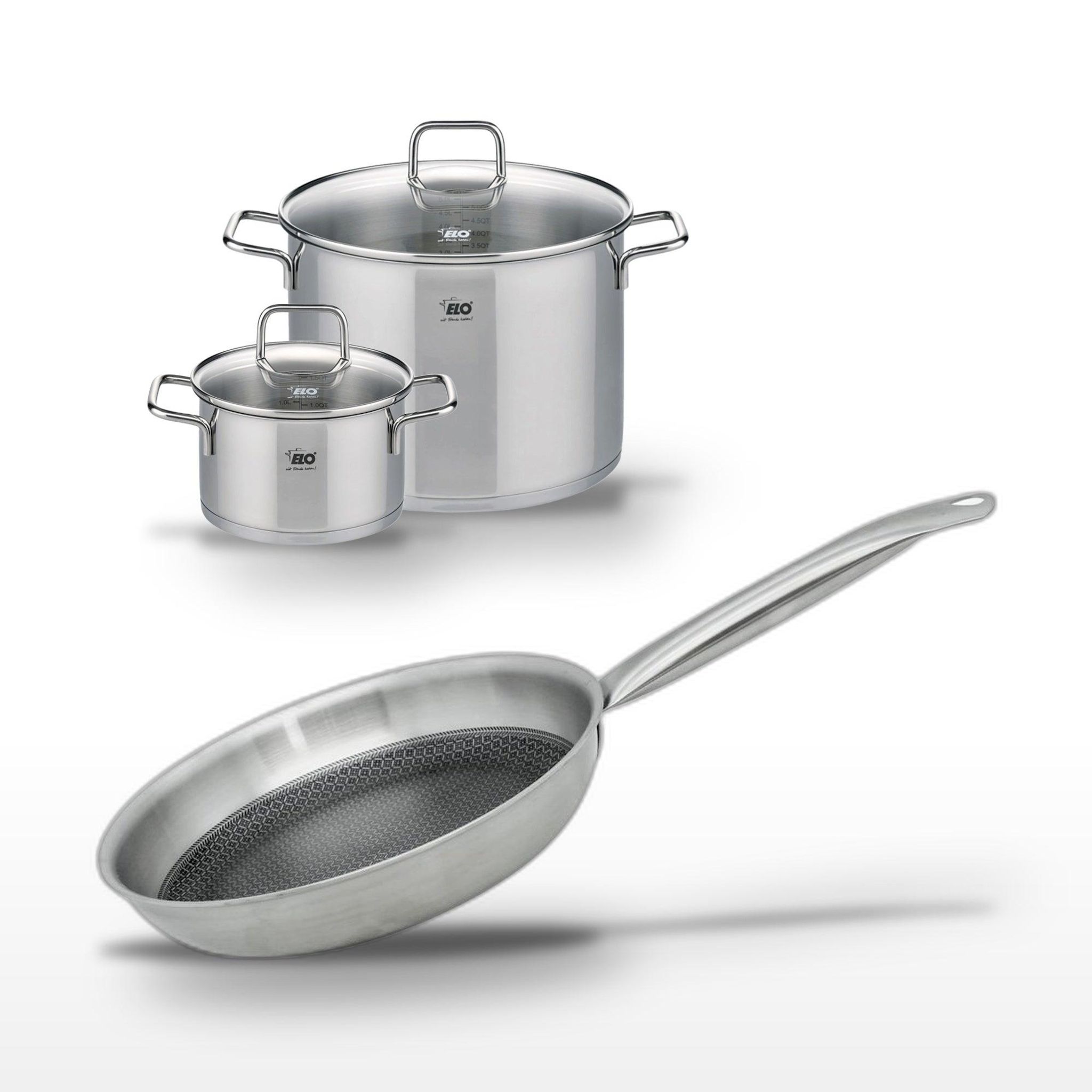 - DESCRIPTION : Ensemble Elo Relief Solution avec deux faitouts et une poêle, pour une cuisine efficace et élégante.