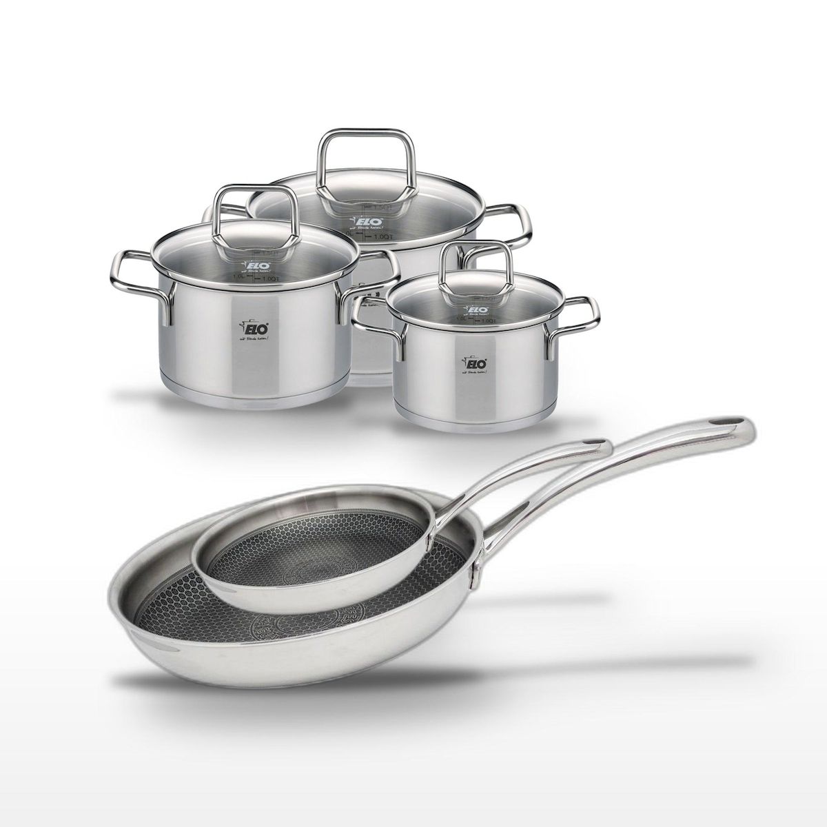 - DESCRIPTION : Ensemble complet avec poêles et faitouts Elo Relief Evolution en inox pour une cuisine saine et efficace.