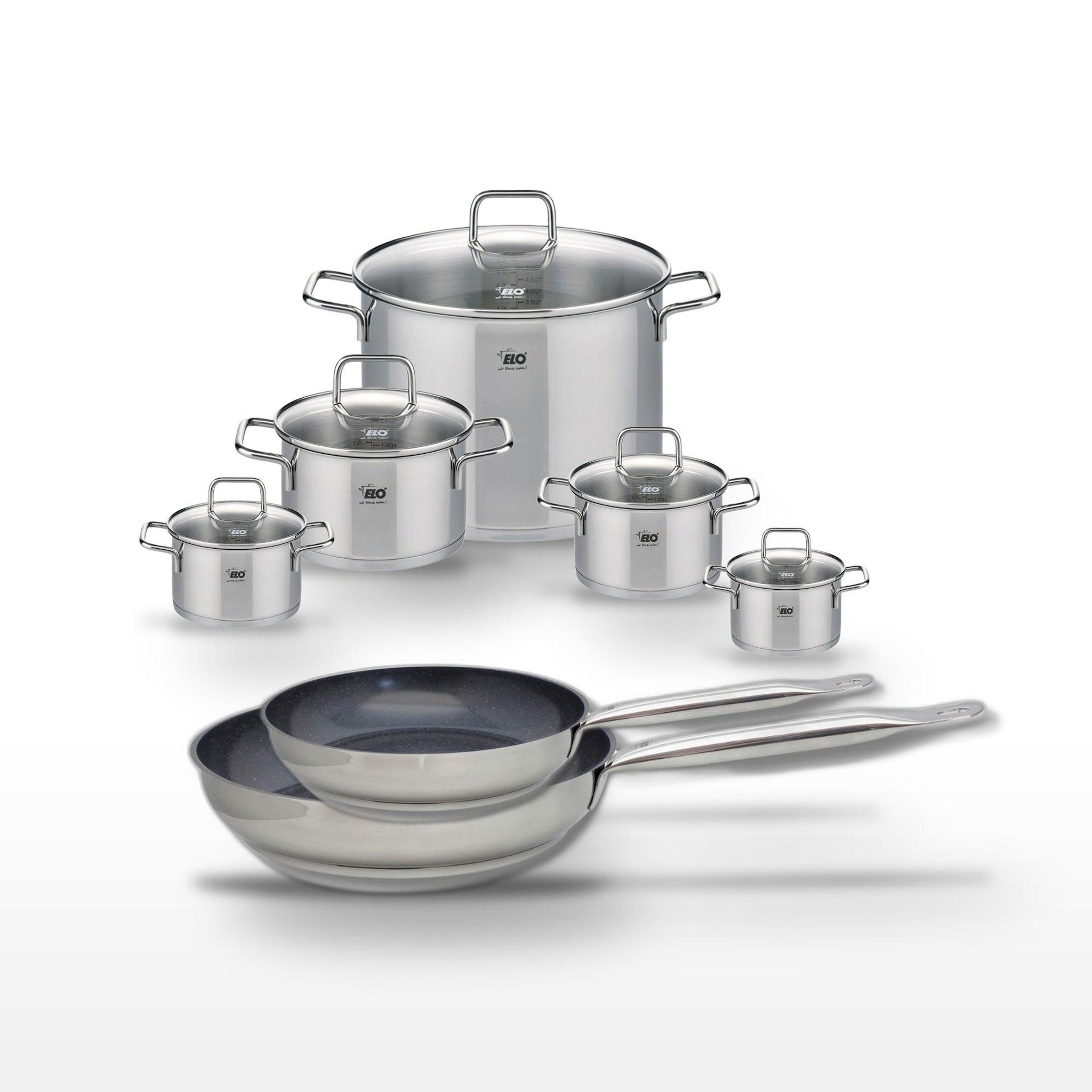Lot 2 Poêles 24/28 cm & 5 Faitouts Elo Profi Therm Platinum