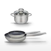 - DESCRIPTION : DESCRIPTION : Ce lot comprend deux poêles céramiques sans PFAS de 24 cm et 28 cm, et un faitout en inox de 12 cm. Idéal pour une cuisson saine.