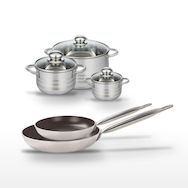 - COMPOSITION : COMPOSITION : Poêles en aluminium avec revêtement céramique, faitouts en inox de haute qualité, tous sans PFAS pour une cuisine saine.