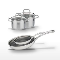 DESCRIPTION : Le lot Elo Relief Evolution inclut deux poêles et deux faitouts en inox, parfaits pour une cuisine saine et performante.PETIT + : Revêtement ELODUR® Professional antiadhésif sans PFAS pour une cuisson saine et sans accroche.COMPOSITION : Acier inoxydable 18/10 de haute qualité pour une