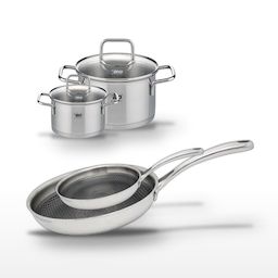 L'ensemble Elo Relief Evolution propose une solution complète pour les cuisines professionnelles et domestiques exigeantes. Composé de deux poêles de 24 cm et 28 cm et de deux faitouts de 14 cm et 20 cm, cet ensemble est fabriqué en acier inoxydable de qualité supérieure. Les poêles sont dotées d'un revêtement antiadhésif ELODUR® Professional, exempt de PFAS, offrant une résistance exceptionnelle aux rayures et une cuisson sans ajout de matières grasses. Leur structure Triply garantit une diffusion homogène de la chaleur, essentielle pour des résultats culinaires optimaux. Les faitouts, parfaits pour mijoter ou cuire des pâtes, sont équipés de fonds capsulés économes en énergie, préservant les nutriments essentiels des aliments. Compatibles avec tous les types de feux, y compris l'induction, et passant au lave-vaisselle, ces ustensiles allient performance, sécurité et facilité d'entretien. Elo, marque de confiance depuis 1934, s'engage à fournir des ustensiles de cuisine qui répondent aux besoins des chefs les plus exigeants.