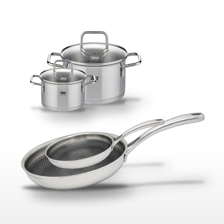 - DESCRIPTION : Ce lot Elo Relief Evolution inclut deux poêles en inox de 24 et 28 cm et deux faitouts de 14 et 20 cm, parfaits pour une cuisson saine et homogène.