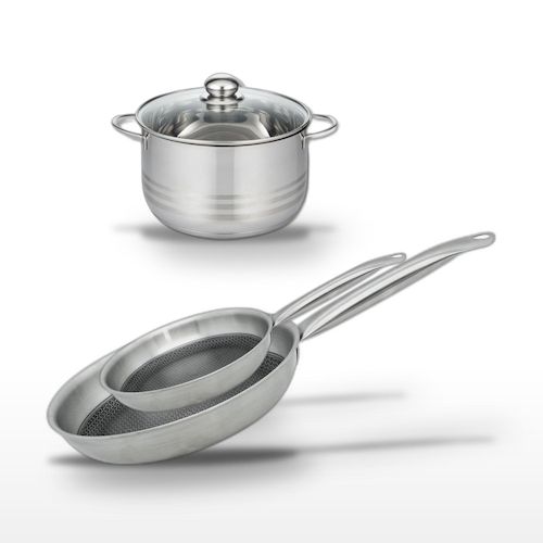 - DESCRIPTION : DESCRIPTION : Ensemble Elo Relief Solution avec deux poêles en acier inoxydable 18/10 et un faitout haut, garantissant une cuisson homogène et saine grâce à un revêtement antiadhésif sans PFAS.