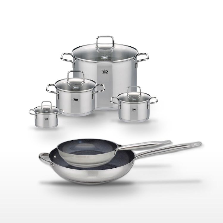 - DESCRIPTION : DESCRIPTION : Ce lot Elo combine des poêles céramiques sans PFAS et des faitouts en inox, offrant une cuisson saine et homogène.