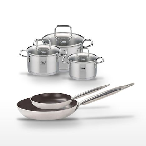 DESCRIPTION : L'ensemble Elo Bistro Line inclut deux poêles en céramique sans PFAS pour une cuisson saine et trois faitouts en inox pour des préparations variées.PETIT + : Les poêles offrent un revêtement antiadhésif de haute qualité, tandis que les faitouts préservent les vitamines grâce à leur fon