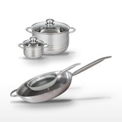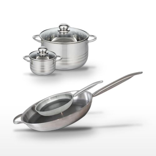 - DESCRIPTION : DESCRIPTION : Ensemble de poêles et faitouts Elo Relief Solution en acier inoxydable, idéal pour une cuisson saine et homogène.