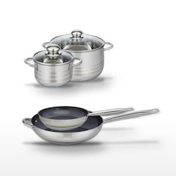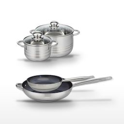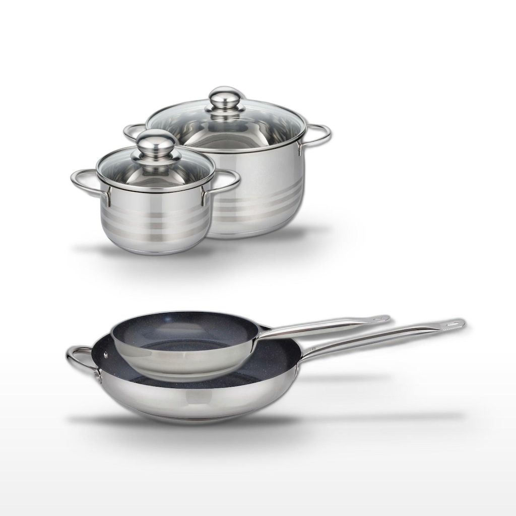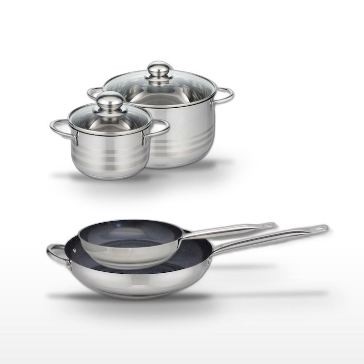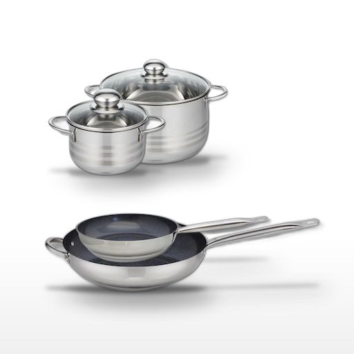 - COMPOSITION : Poêles en acier inoxydable avec revêtement sans PFAS, faitouts en inox de haute qualité, tous compatibles avec l'induction.