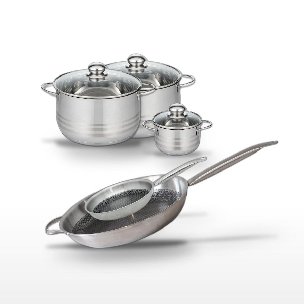 Lot 2 Poêles 24/32cm & 3 Faitouts 12/20/24cm Elo Relief Solution