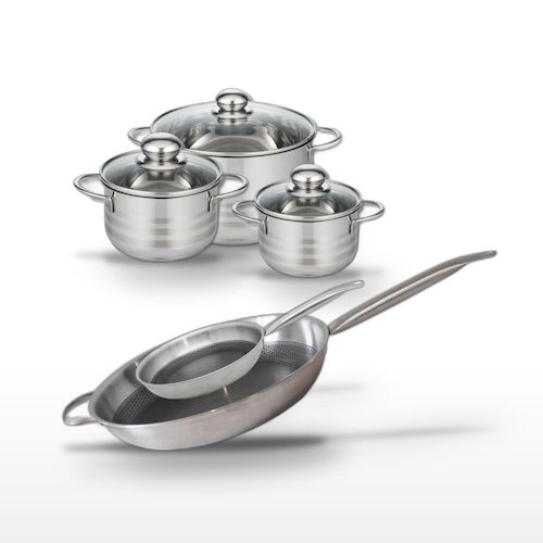 - DESCRIPTION : Lot complet de 2 poêles et 3 faitouts Elo Relief Solution, en acier inoxydable 18/10, pour une cuisson homogène et saine.