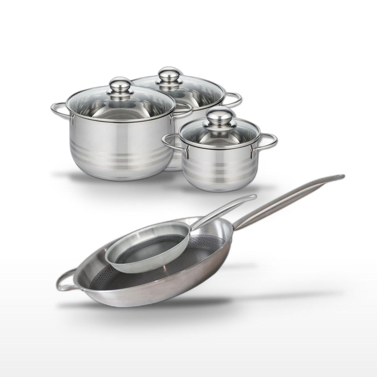 Lot 2 Poêles 24/32cm & 3 Faitouts 16/20/24cm Elo Relief Solution