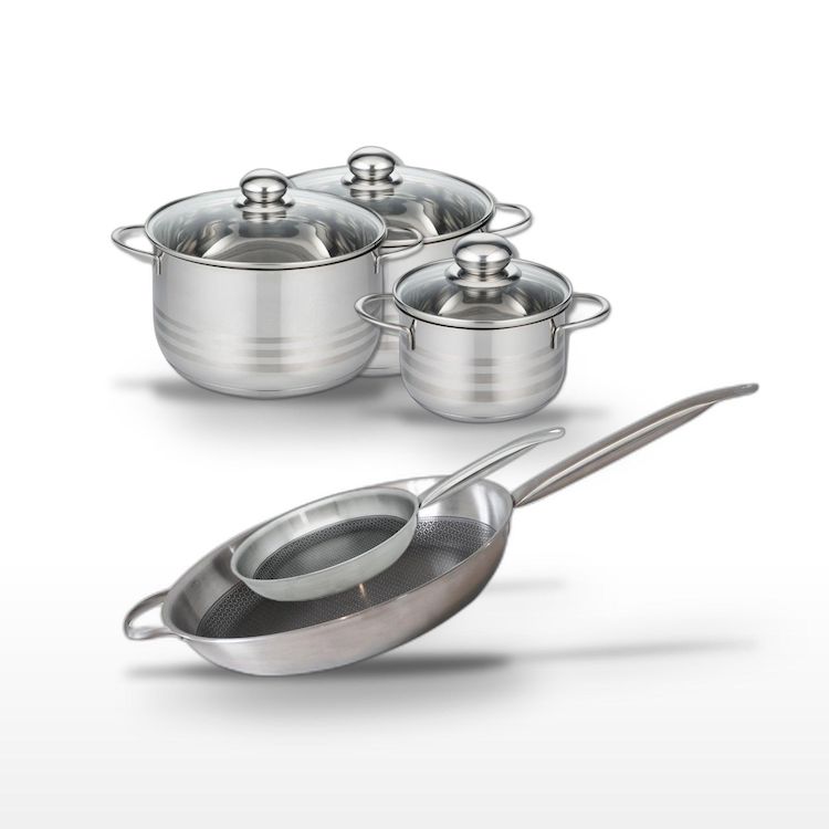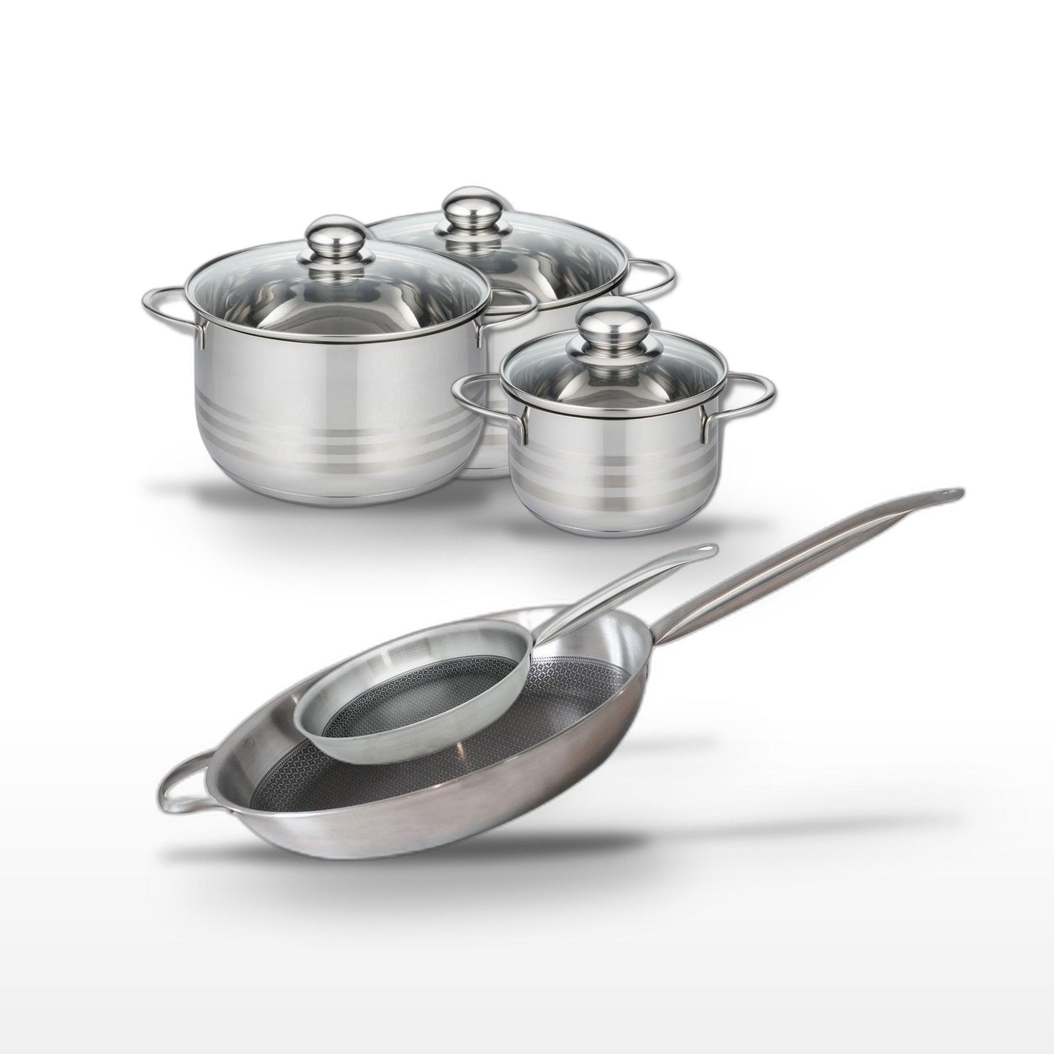 - COMPOSITION : COMPOSITION : Acier inoxydable 18/10 de haute qualité, aluminium pour une conductivité thermique optimale, et revêtement antiadhésif minéral pour les poêles.