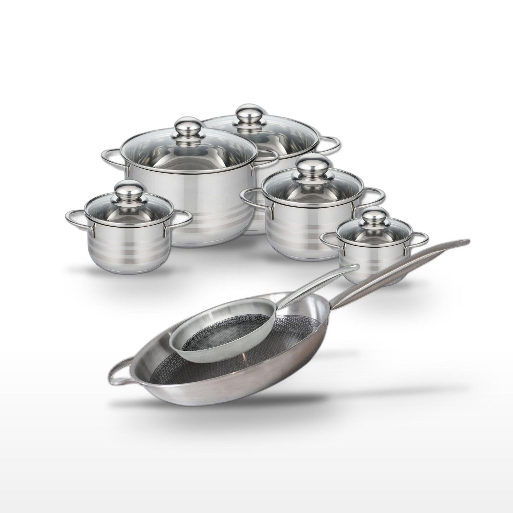 - DESCRIPTION : Ce lot Elo Relief Solution inclut deux poêles de 24 cm et 32 cm, et cinq faitouts de 12 à 24 cm, tous en acier inoxydable, pour une cuisine saine et performante.