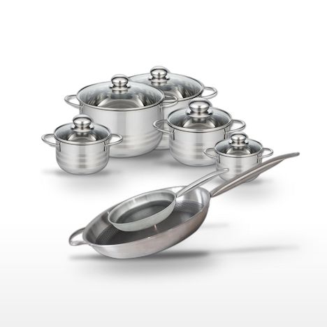 Lot 2 Poêles 24/32cm & 5 Faitouts 12/14/16/20/24cm Elo Relief Solution