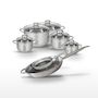 Ce lot de cuisine professionnel Elo Relief Solution est conçu pour les chefs et les passionnés de cuisine recherchant performance et durabilité. Les deux poêles de 24 cm et 32 cm, fabriquées en acier inoxydable 18/10, sont dotées d'un revêtement antiadhésif ELODUR® Select sans PFAS, assurant une cuisson homogène et saine. Leur compatibilité avec tous les types de feux, y compris l'induction, et leur capacité à passer au four jusqu'à 240°C, les rendent idéales pour une grande variété de préparations culinaires. Les cinq faitouts en acier inoxydable, disponibles en tailles 12 cm, 14 cm, 16 cm, 20 cm et 24 cm, sont parfaits pour les cuissons lentes et les plats mijotés. Leurs bases spéciales économie d'énergie garantissent une répartition uniforme de la chaleur, tandis que les couvercles en verre résistant aux chocs permettent une cuisson à la vapeur, préservant ainsi les nutriments et les saveurs. Chaque faitout est équipé d'une échelle de mesure intégrée, simplifiant les préparations sans nécessiter d'ustensiles supplémentaires. La qualité de fabrication Elo assure une résistance optimale à la chaleur et aux rayures, facilitant ainsi l'entretien et garantissant une longévité exceptionnelle. Ce lot est idéal pour les cuisines professionnelles et domestiques, offrant des performances de cuisson supérieures et une esthétique élégante.