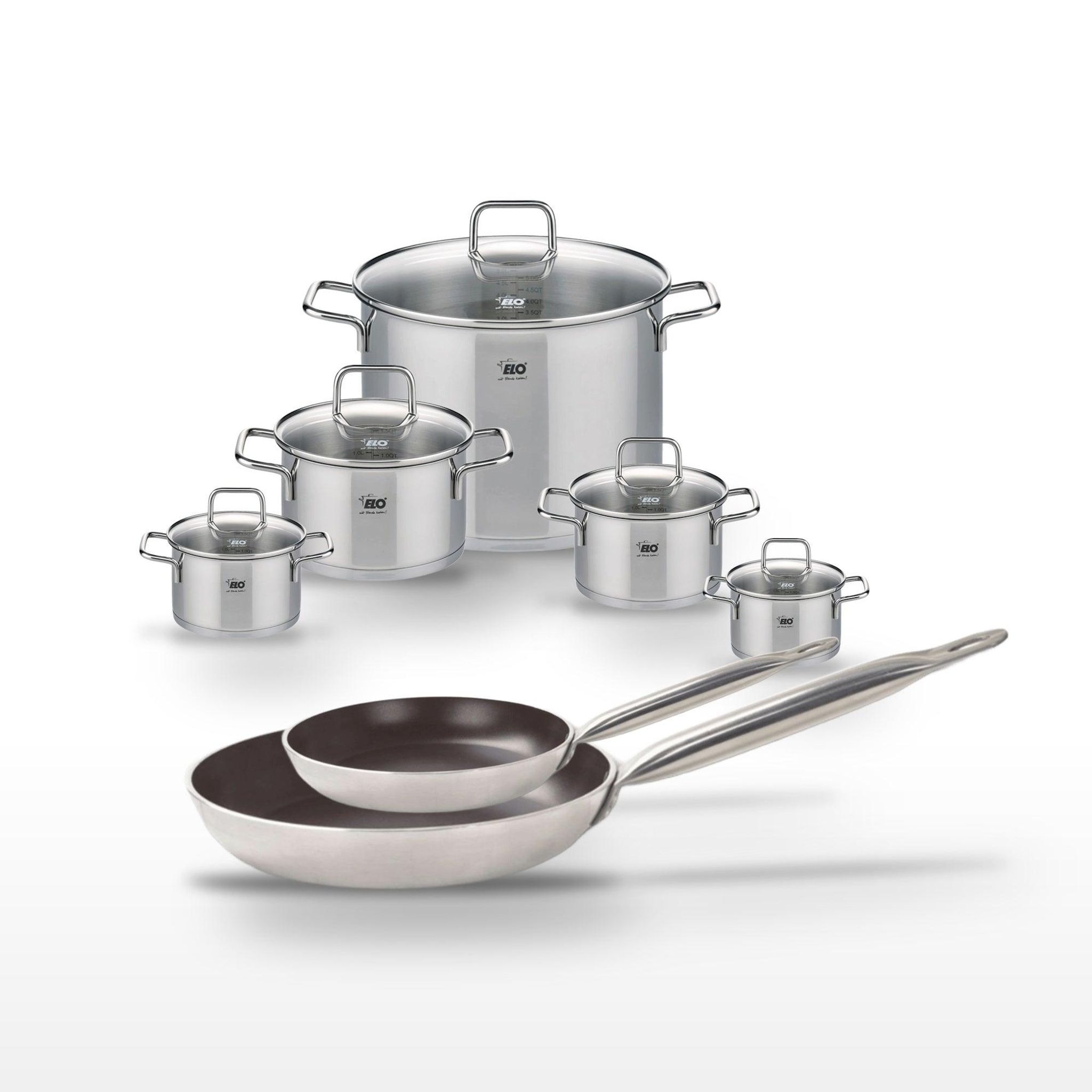Lot 2 Poêles 24/32cm & 5 Faitouts 12/14/16/20/26cm Elo Bistro Line