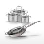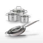 - COMPOSITION : Acier inoxydable 18/10, aluminium pour les poêles, acier inoxydable et verre pour les faitouts, garantissant robustesse et efficacité.