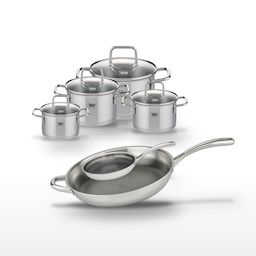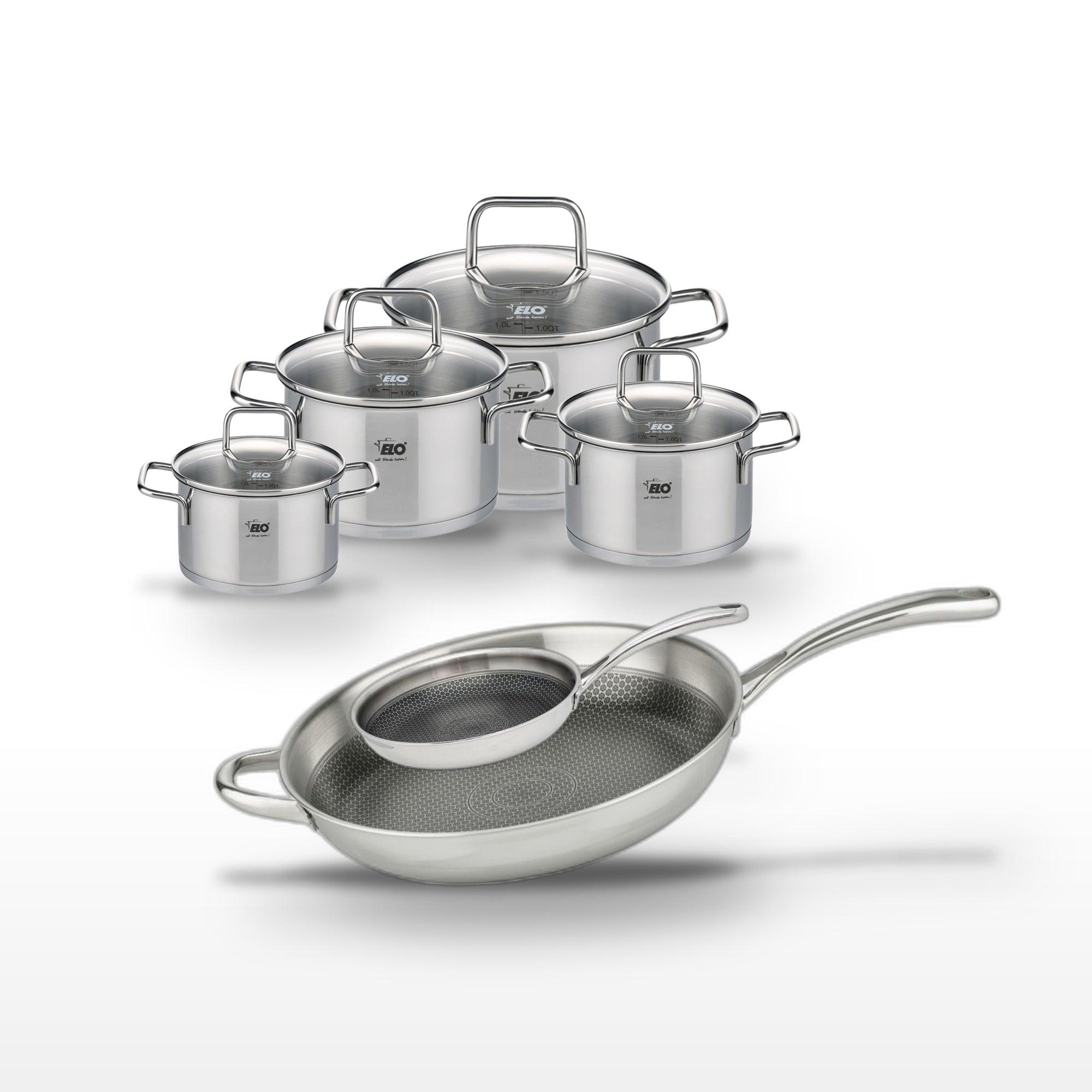 - DESCRIPTION : Ensemble de 2 poêles et 4 faitouts en inox, conçu pour une cuisson homogène et saine. Les poêles Elo Relief Evolution offrent un revêtement antiadhésif performant.