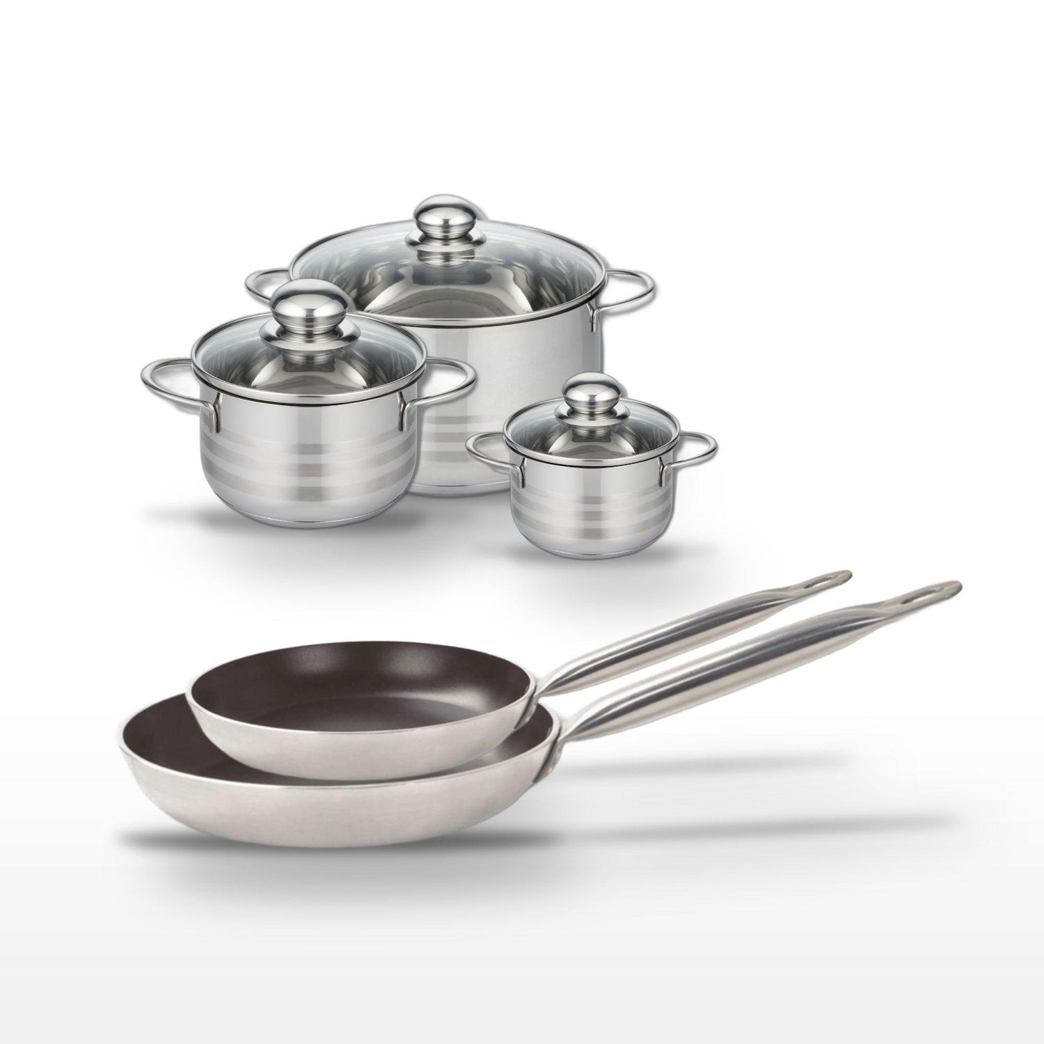 Lot 2 Poêles 28/32 cm & 3 Faitouts 12/16/24 cm Elo Bistro Line