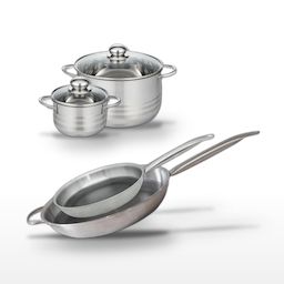 - DESCRIPTION : L'ensemble Elo Relief Solution inclut deux poêles de 28 cm et 32 cm et deux faitouts de 14 cm et 24 cm, tous en acier inoxydable de qualité.