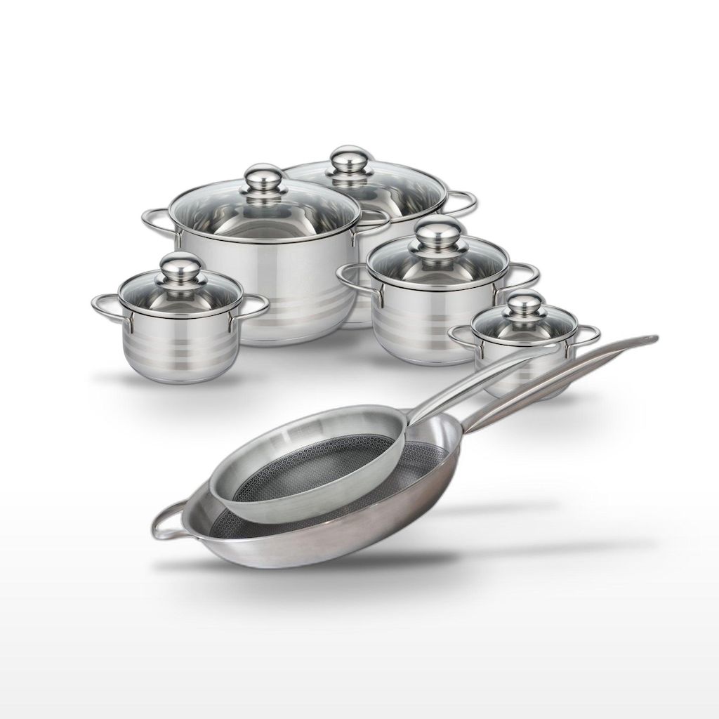 - DESCRIPTION : DESCRIPTION : Ensemble complet avec poêles antiadhésives et faitouts en inox, offrant une cuisson homogène et saine.