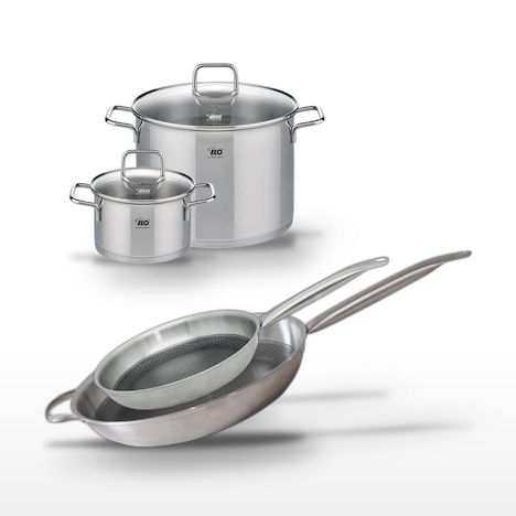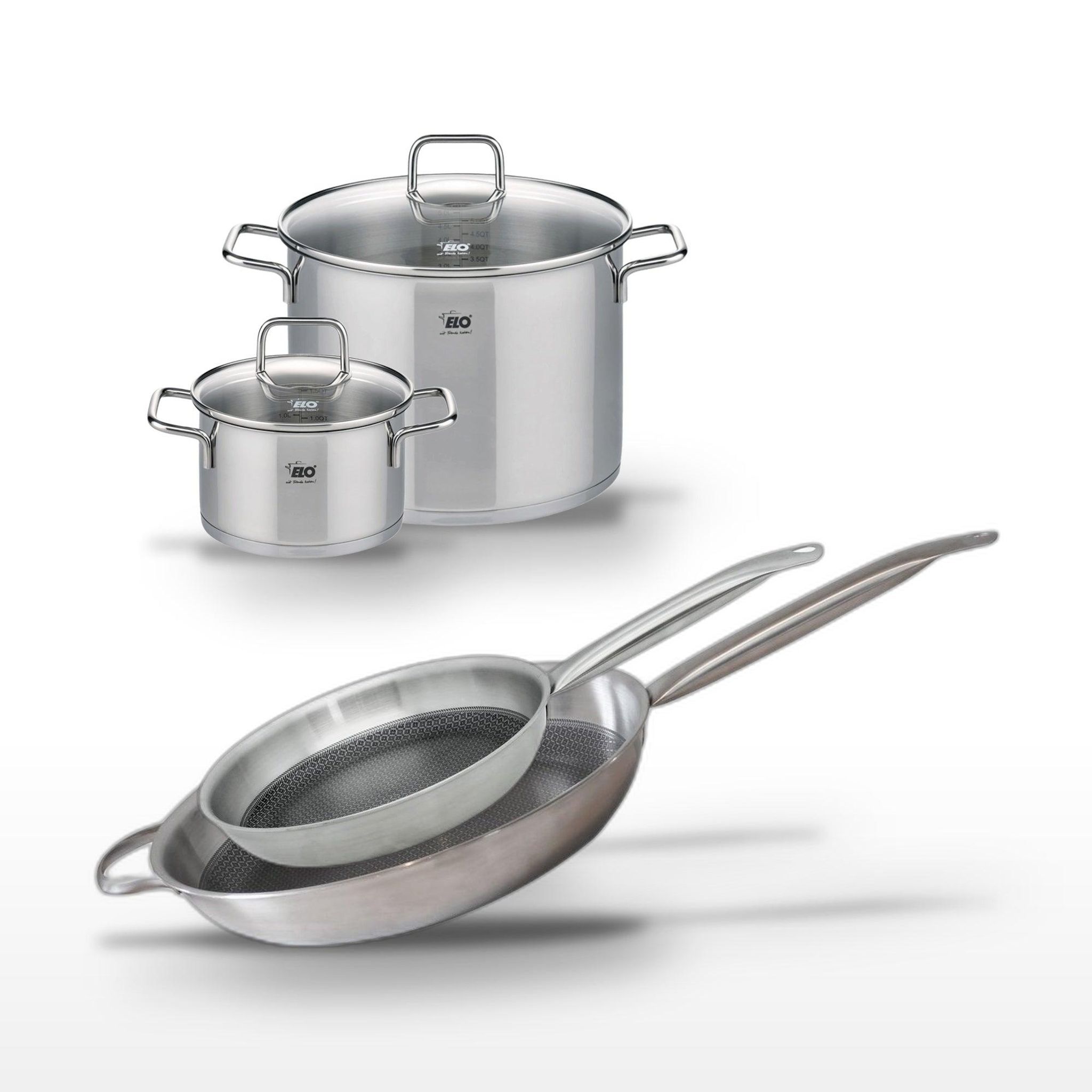 Lot 2 Poêles 28/32cm & 2 Faitouts 20/26cm Elo Relief Solution