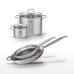 - DESCRIPTION : DESCRIPTION : Profitez d'un ensemble complet avec deux poêles et deux faitouts en acier inoxydable, pour une cuisson parfaite de vos plats.