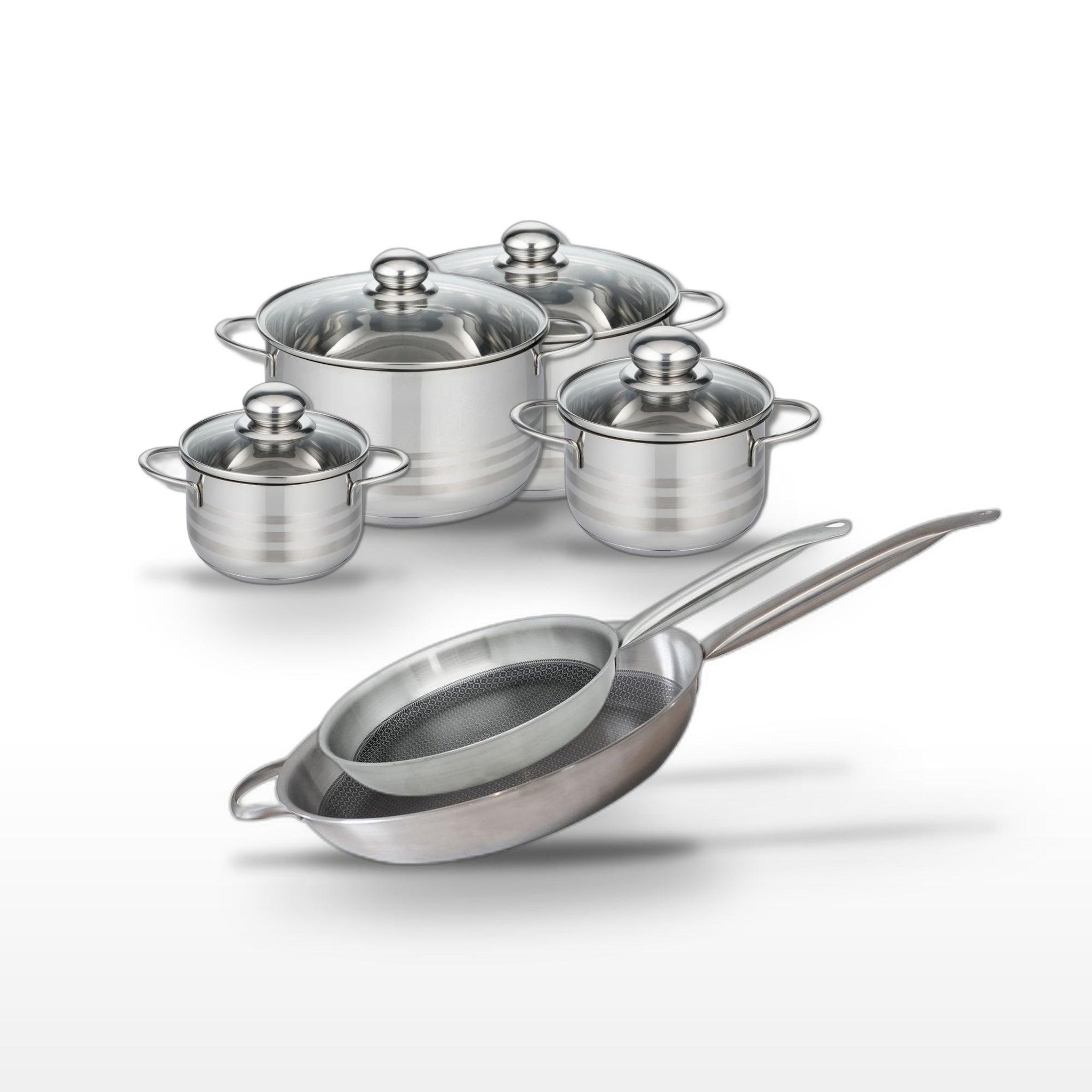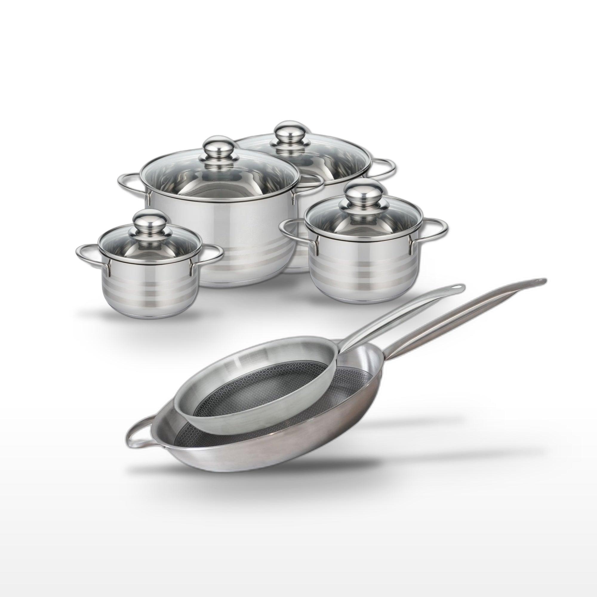 - DESCRIPTION : L'ensemble Elo Relief Solution inclut deux poêles de haute performance et quatre faitouts polyvalents, tous en acier inoxydable, pour une cuisson homogène et économe en énergie.