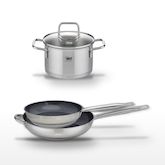 - COMPOSITION : Fabriqué en acier inoxydable 18/10, cet ensemble garantit robustesse et résistance à la corrosion, avec un revêtement sans PFAS pour une cuisson sans risque.