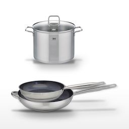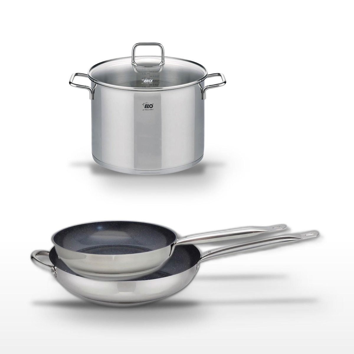 - DESCRIPTION : DESCRIPTION : Découvrez l'excellence culinaire avec cet ensemble Elo, comprenant deux poêles céramique sans PFAS et un faitout en inox, parfaits pour une cuisine saine.