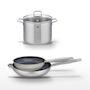 Cet ensemble de cuisine Elo est conçu pour les professionnels et les amateurs de cuisine exigeants. Il comprend deux poêles de la collection Elo Profi Therm Platinum, de 28 cm et 32 cm, toutes deux dotées d'un revêtement ELODUR® Professional sans PFAS, garantissant une cuisson saine et une résistance accrue aux rayures. La poêle de 32 cm est équipée d'une seconde poignée pour une manipulation aisée. Le faitout en inox de 26 cm de la collection Elo Citrin complète cet ensemble, offrant une capacité généreuse de 9,5 litres, idéale pour les grandes préparations. Chaque pièce est fabriquée en acier inoxydable 18/10, assurant une durabilité exceptionnelle et une compatibilité avec tous les types de feux, y compris l'induction. L'entretien est simplifié grâce à la compatibilité avec le lave-vaisselle, permettant de maintenir vos ustensiles en parfait état. Cet ensemble est parfait pour les cuisines professionnelles, les restaurants et les chefs passionnés, offrant une polyvalence et une performance inégalées.