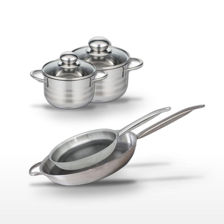 Lot 2 Poêles 28/32cm et 2 Faitouts 14/16cm Elo Relief Solution