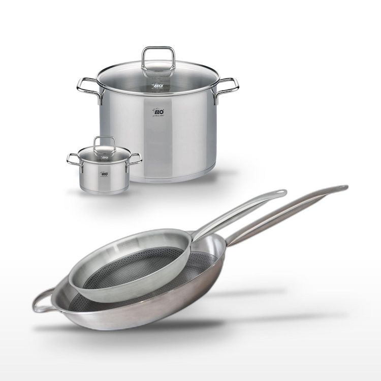 - DESCRIPTION : DESCRIPTION : L'ensemble Elo Relief Solution inclut deux poêles et deux faitouts en inox, parfaits pour des cuissons variées et efficaces.