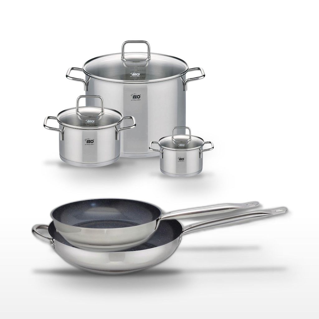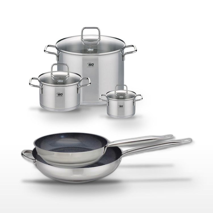 - DESCRIPTION : DESCRIPTION : Ensemble de haute qualité Elo Profi Therm Platinum avec 2 poêles céramiques sans PFAS et 3 faitouts en inox pour une cuisine saine et polyvalente.