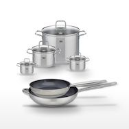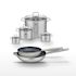 - COMPOSITION : COMPOSITION : Poêles en acier inoxydable avec revêtement sans PFAS. Faitouts en inox avec couvercles en verre, garantissant une cuisson optimale.
