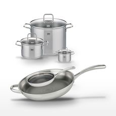 - PETIT + : Les poêles bénéficient d'un revêtement antiadhésif ELODUR® Professional, sans PFAS, pour une cuisson saine et sans attache.
