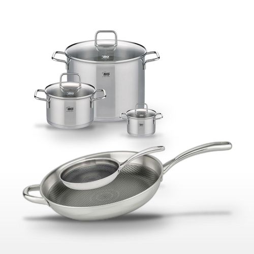 - DESCRIPTION : Ce lot Elo combine deux poêles de haute qualité et trois faitouts polyvalents, parfaits pour toutes vos préparations culinaires.