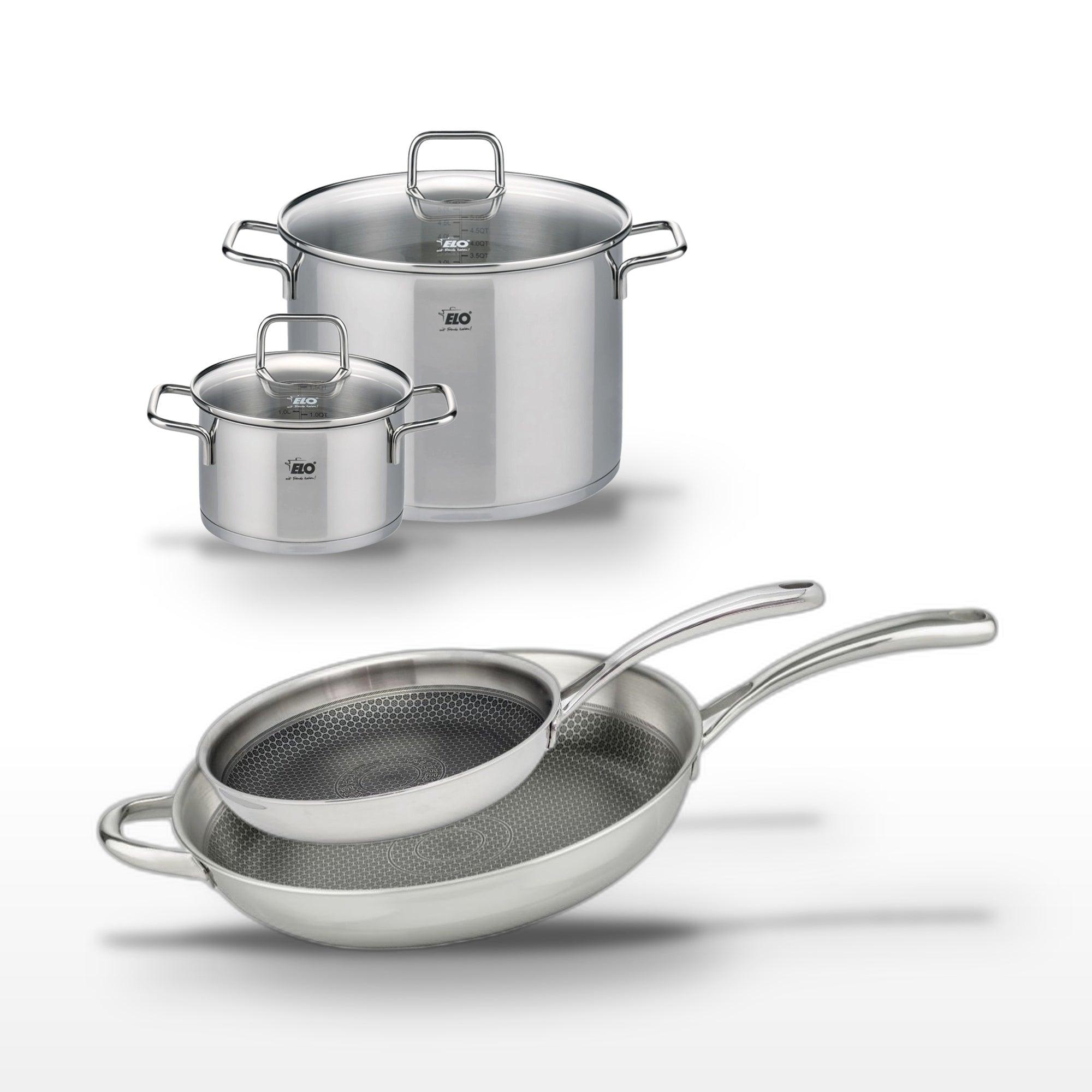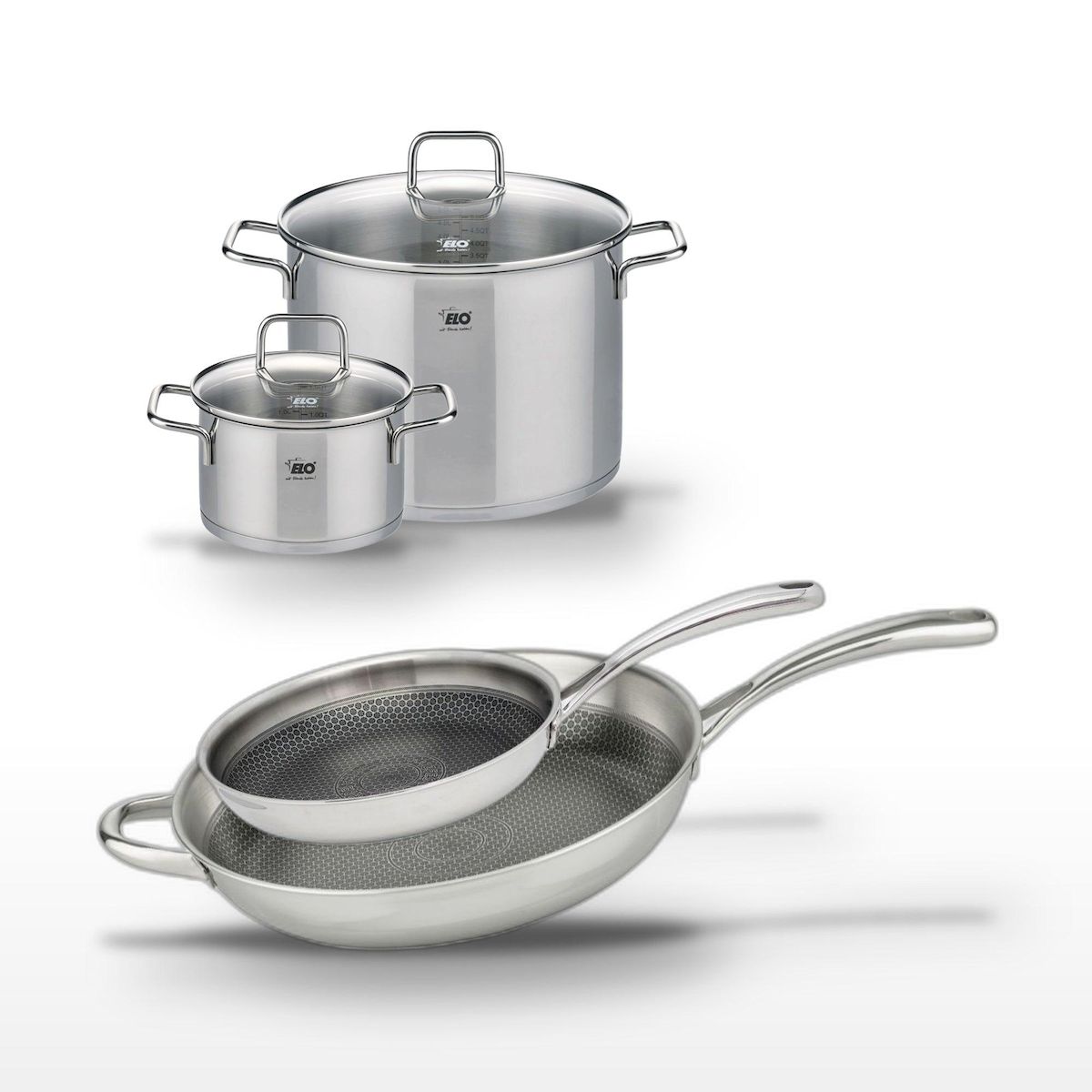Lot 2 Poêles 32/28 cm & 2 Faitouts 20/26 cm Elo Relief Evolution