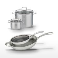 - COMPOSITION : Acier inoxydable 18/10, aluminium pour une répartition uniforme de la chaleur, et verre pour les couvercles des faitouts.