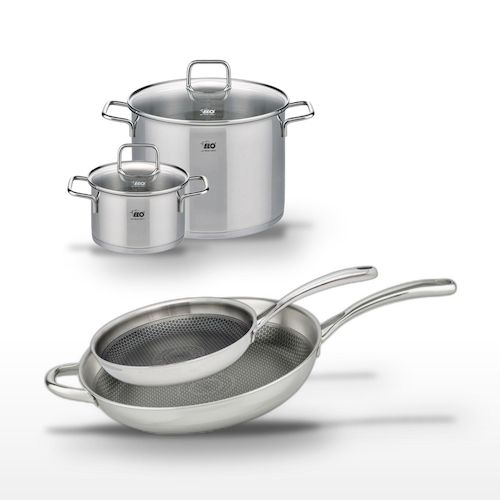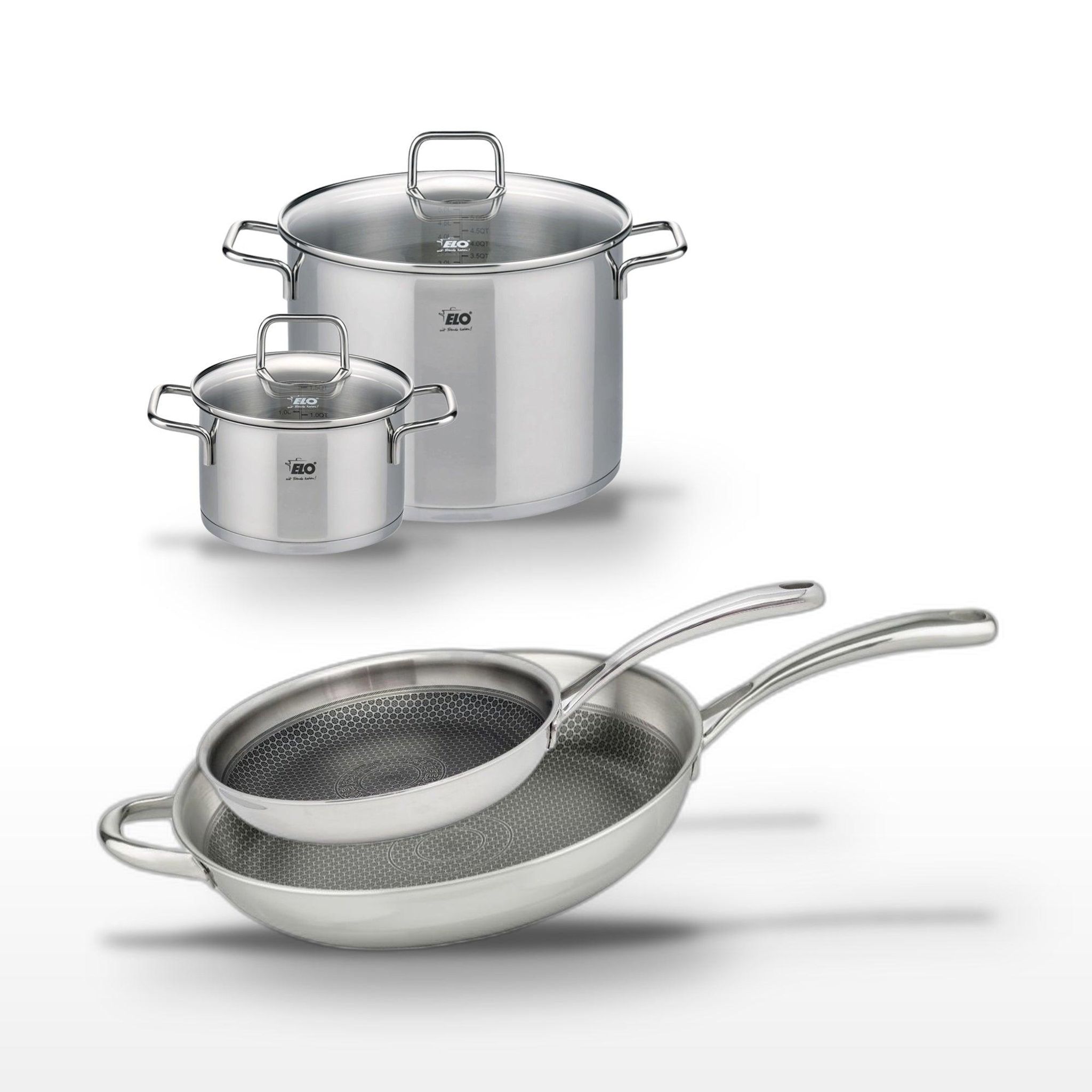 - DESCRIPTION : Le lot Elo Relief Evolution inclut des poêles et faitouts en inox 18/10 offrant une cuisson homogène et saine, idéale pour tous types de plats.