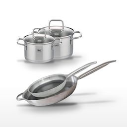 Le lot Elo Relief Solution est une sélection premium d'ustensiles de cuisine, conçue pour offrir une performance exceptionnelle. Les poêles de 32 cm et 28 cm, fabriquées en acier inoxydable 18/10, bénéficient d'une technologie de revêtement antiadhésif ELODUR® Select, garantissant une cuisson homogène et une facilité de nettoyage. Les faitouts de 16 cm et 14 cm, en inox, sont dotés d'un fond capsulé qui optimise l'efficacité énergétique tout en préservant les vitamines des aliments. Tous ces produits sont compatibles avec tous les types de feux, y compris l'induction, et peuvent être utilisés au four jusqu'à 240°C, offrant ainsi une grande polyvalence. Ce lot est idéal pour les chefs professionnels et les passionnés de cuisine, cherchant à allier efficacité, design et confort d'utilisation.