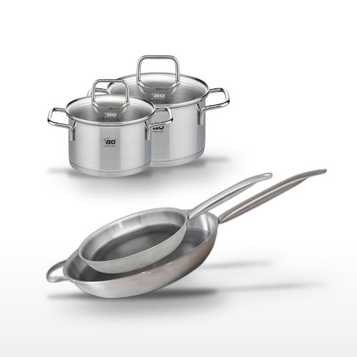 - PETIT + : PETIT + : Les poêles disposent d'un revêtement antiadhésif ELODUR® Select, facilitant le nettoyage et garantissant une cuisson faible en matières grasses.